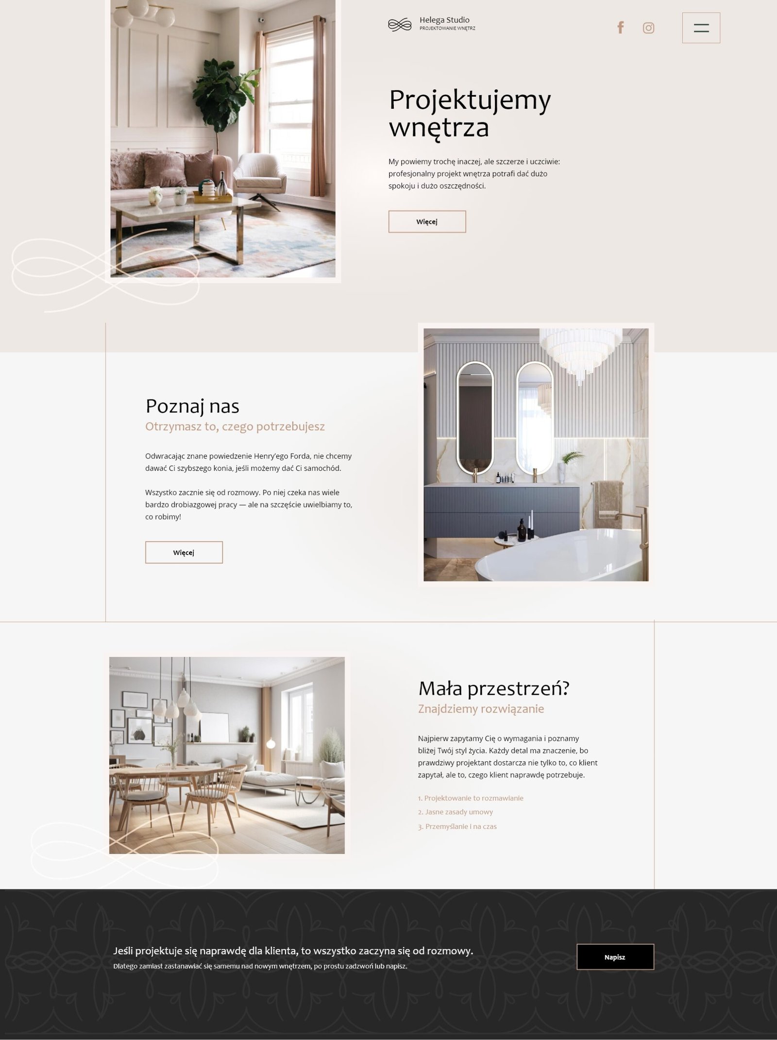 Każda strona którą projektuję jest dopracowana pod każdym detalem: spójna graficznie, sprzedażowa, dopasowana do stylu marki, zoptymalizowana pod SEO i po prostu – wizualnie atrakcyjna.